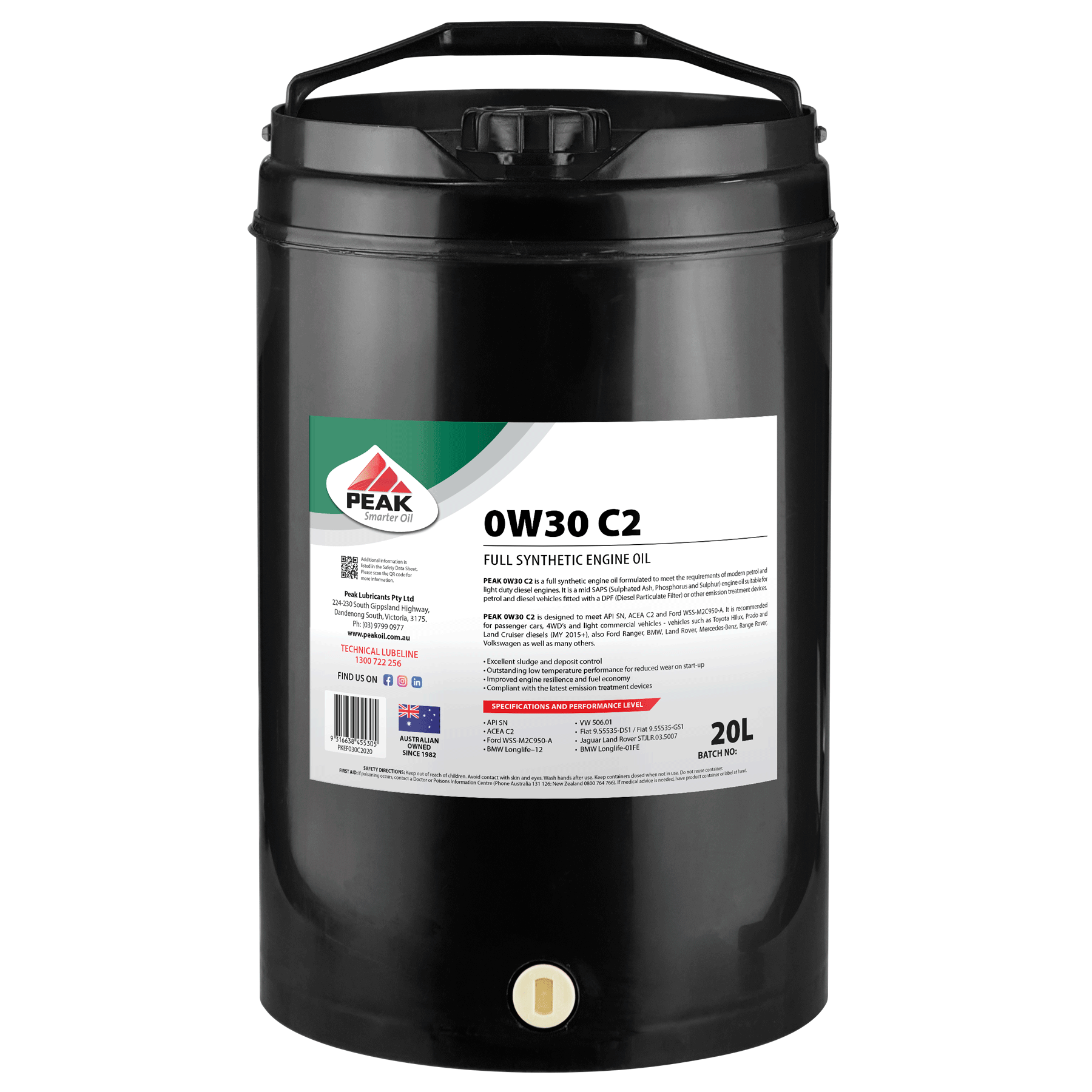 PEAK 0W30 C2 is a full synthetic engine oil formulated to meet the requirements of modern petrol and light duty diesel engines. It is a mid SAPS (Sulphated Ash, Phosphorus and Sulphur) engine oil suitable for petrol and diesel vehicles fitted with a DPF (Diesel Particulate Filter) or other emission treatment devices.