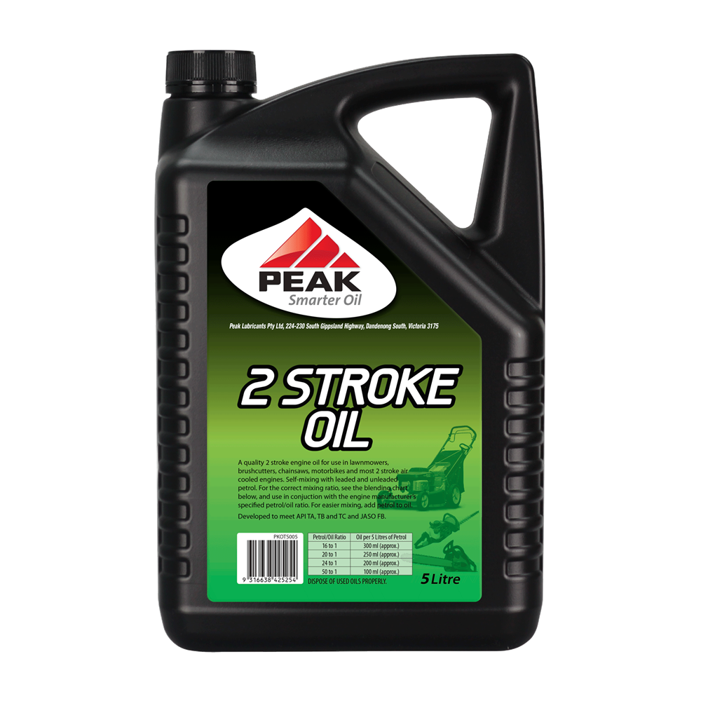 PEAK 2 STROKE OIL is suitable to be mixed with petrol and used as a lubricant in air-cooled two stroke engines typically found in lawn mowers, brush cutters & chainsaws. It may also be used in other small air-cooled two stroke engines at the manufacturers recommended fuel/oil dilution rates.