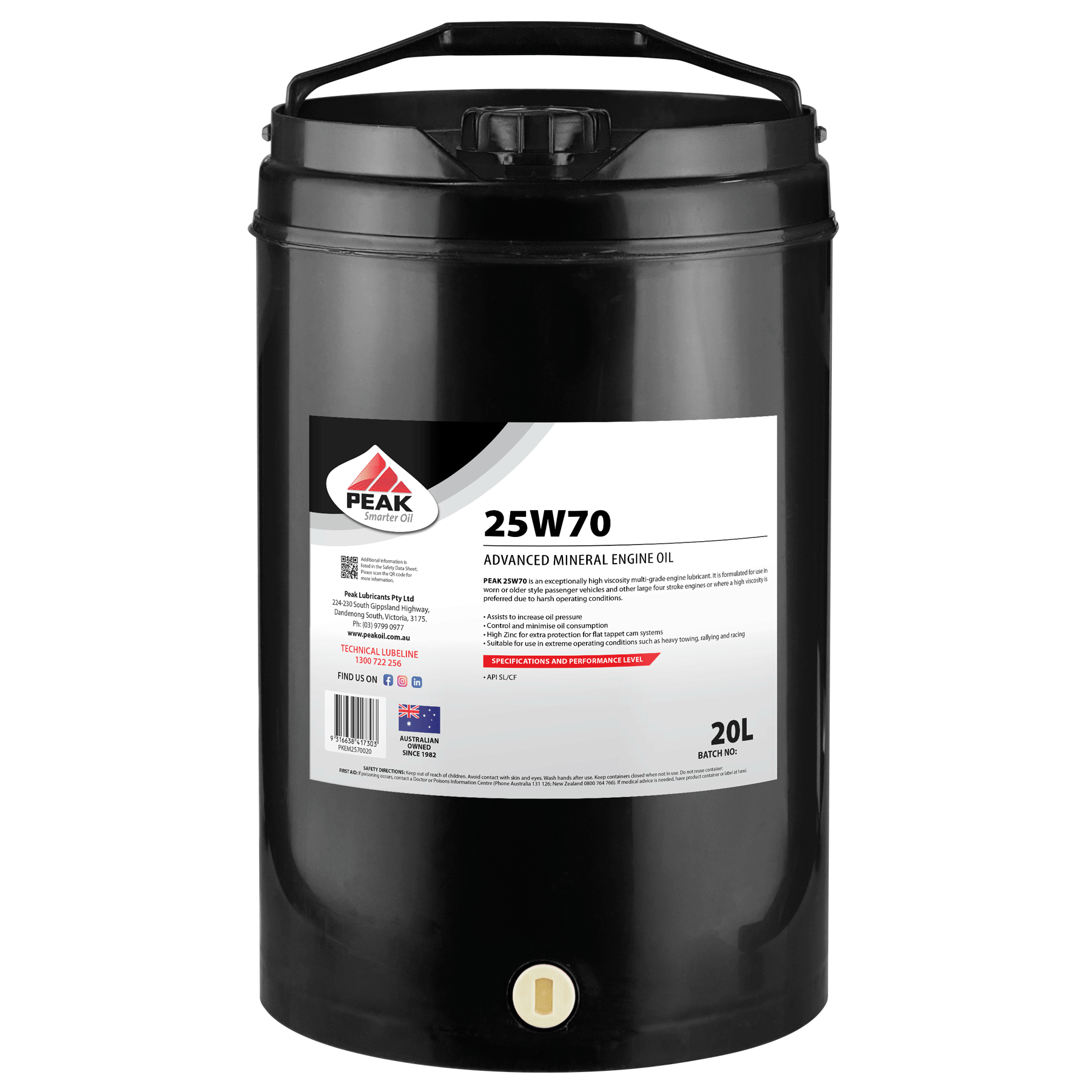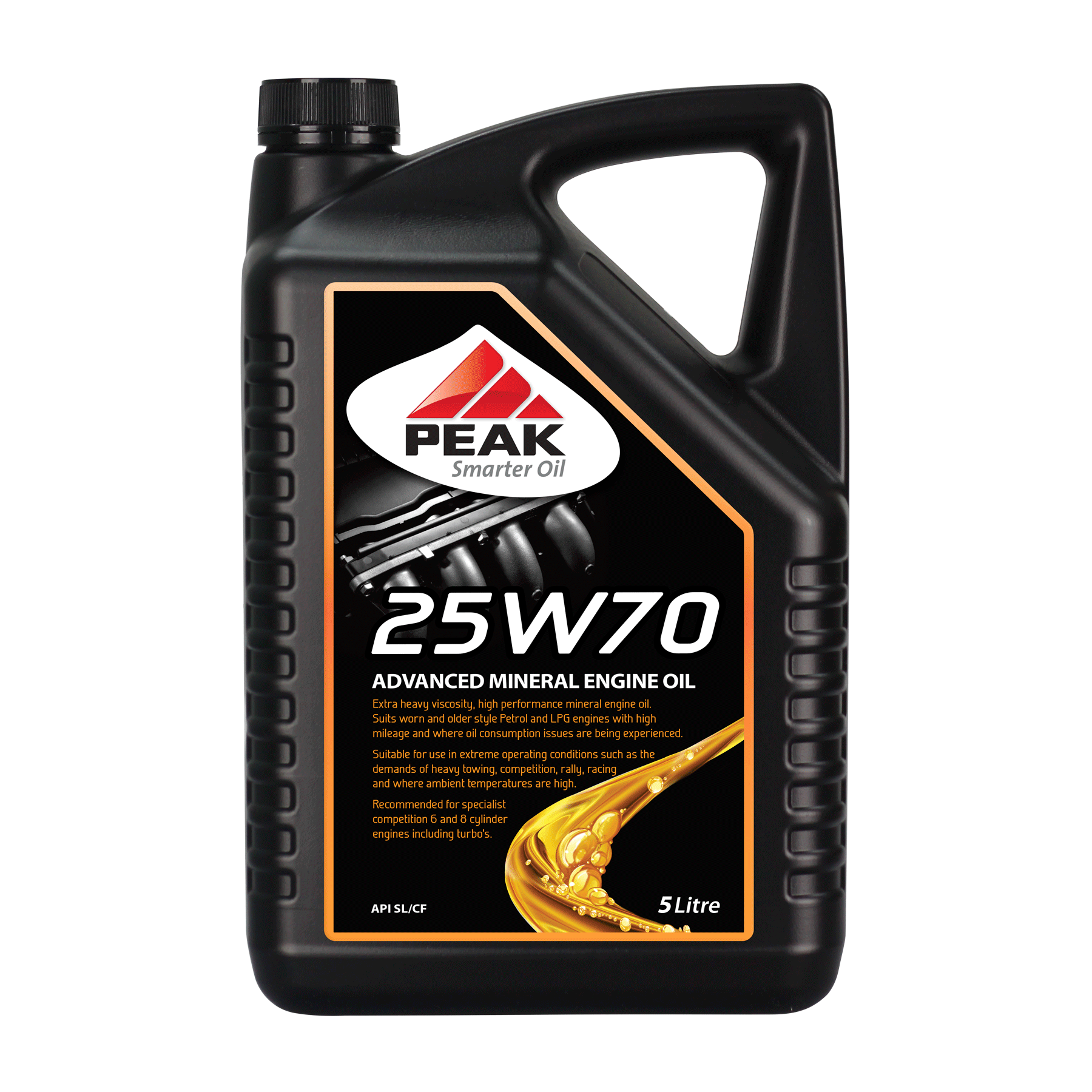 PEAK 25W70 is an exceptionally high viscosity multi-grade engine lubricant. It is formulated for use in worn or older style passenger vehicles and other large four stroke engines or where a high viscosity is preferred due to harsh operating conditions.