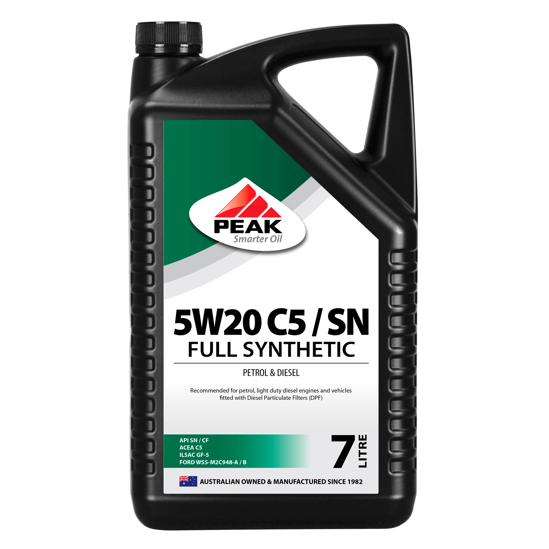 PEAK 5W20 C5 is a premium synthetic engine oil formulated to meet the requirements of modern petrol and light duty diesel engines. It is recommended for passenger cars (including multi-valve, supercharged & turbocharged), 4WD’s, and light commercial vehicles including those with a Diesel Particulate Filter (DPF) or other emission treatment devices.