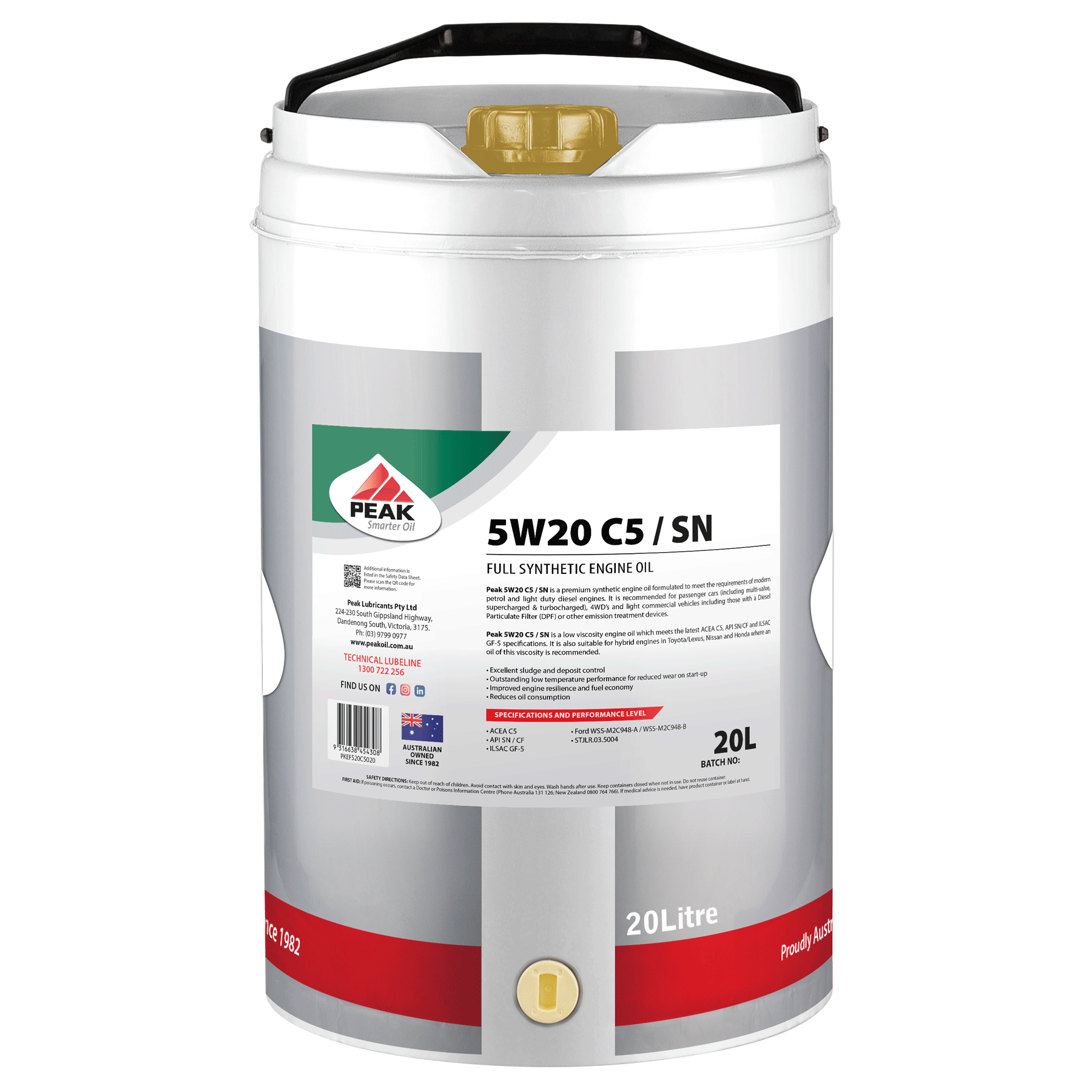 PEAK 5W20 C5 is a low viscosity engine oil which meets the latest ACEA C5, API SN/CF and ILSAC GF-5 specifications. It is also suitable for hybrid engines in Toyota/Lexus, Nissan and Honda where an oil of this viscosity is recommended.