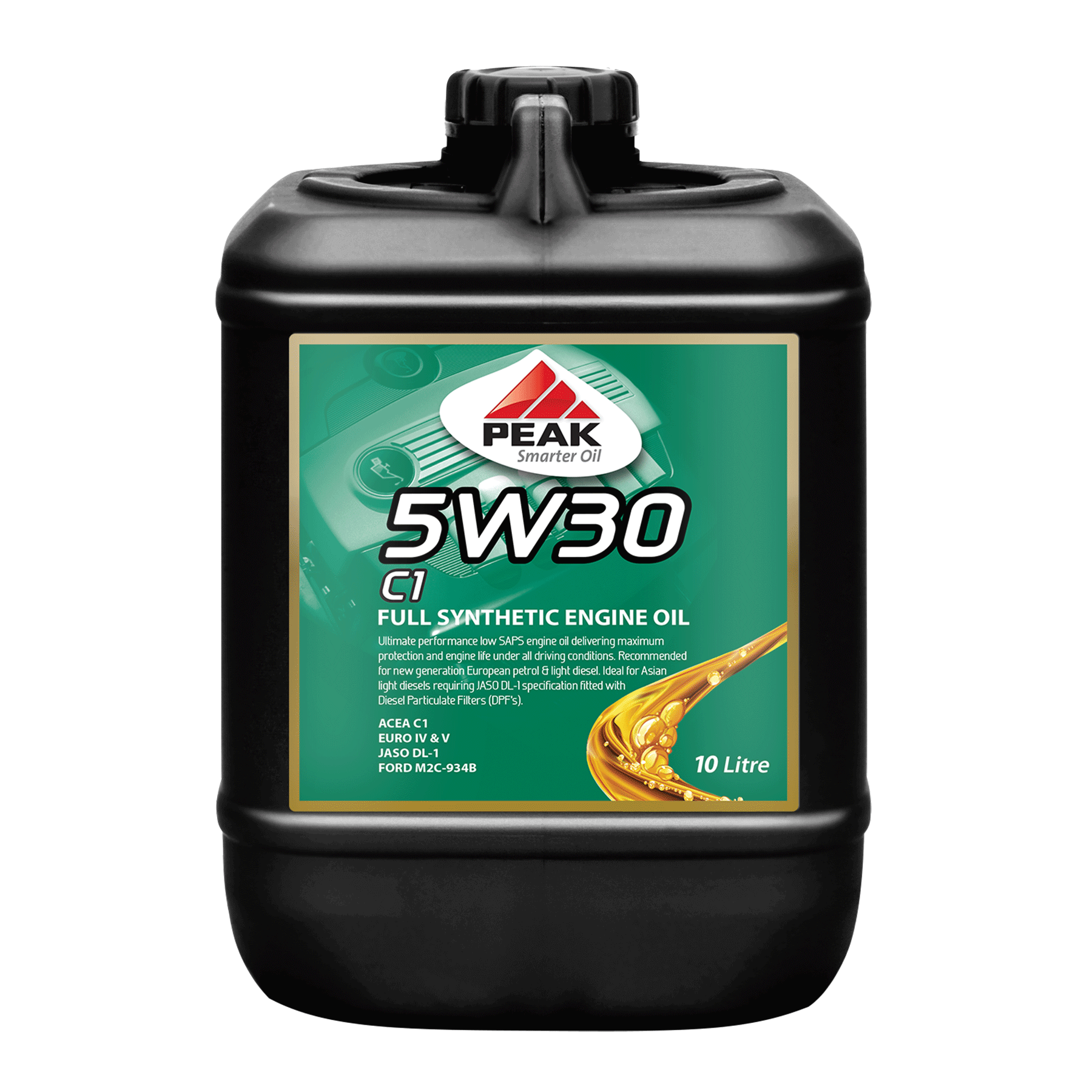 PEAK 5W30 C1 has been specially developed for petrol and diesel engines with particulate filters and meets the requirements for Ford, Jaguar, Mazda and Mitsubishi and all other engines requiring ACEA C1, JASO DL-1, Ford WSS-M2C934-B and Jaguar Land Rover STJLR.03.5005.