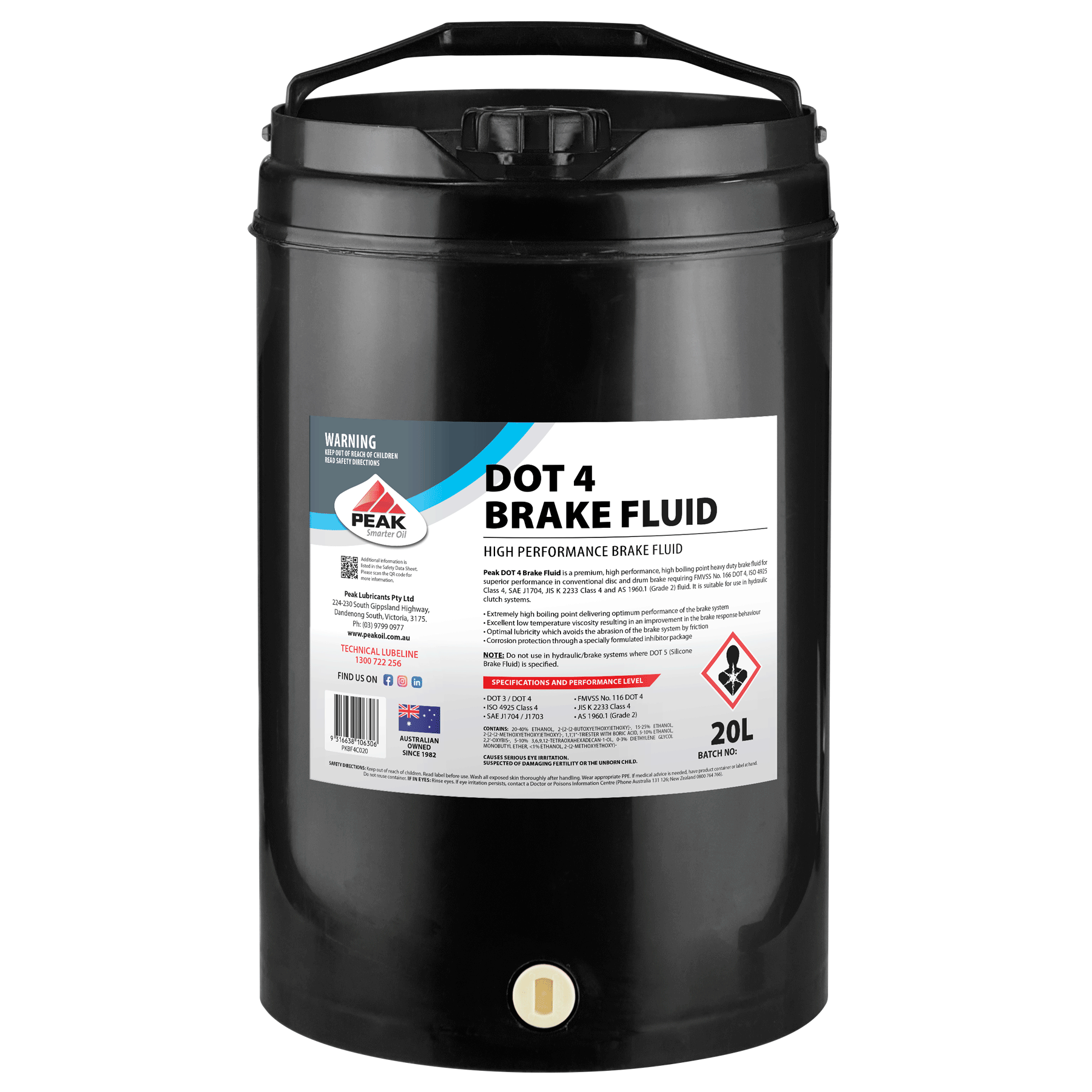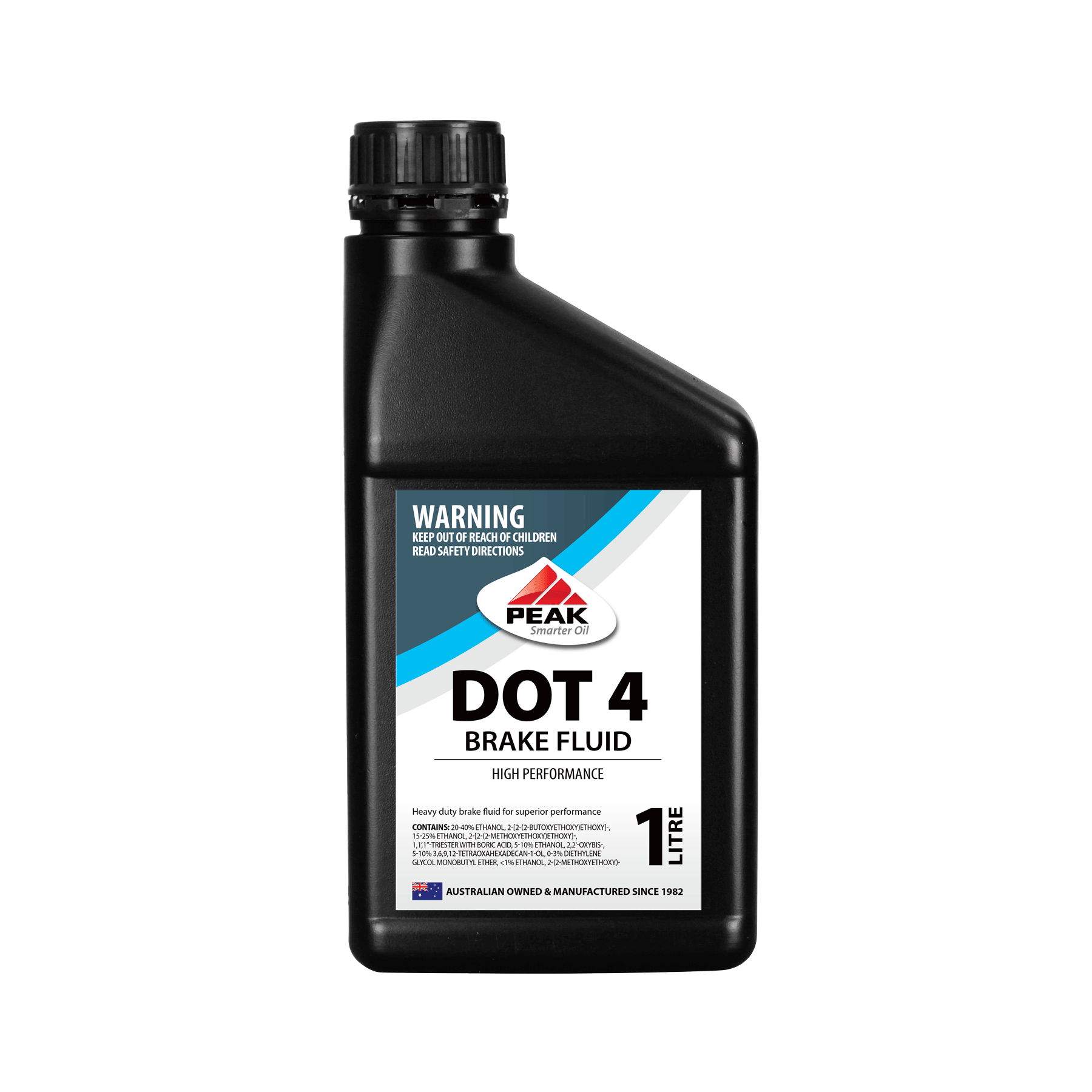 PEAK DOT 4 BRAKE FLUID is a premium, high performance, high boiling point heavy duty brake fluid for superior performance in conventional disc and drum brake requiring FMVSS No. 166 DOT 4, ISO 4925 Class 4, SAE J1704, JIS K 2233 Class 4 and AS 1960.1 (Grade 2) fluid.