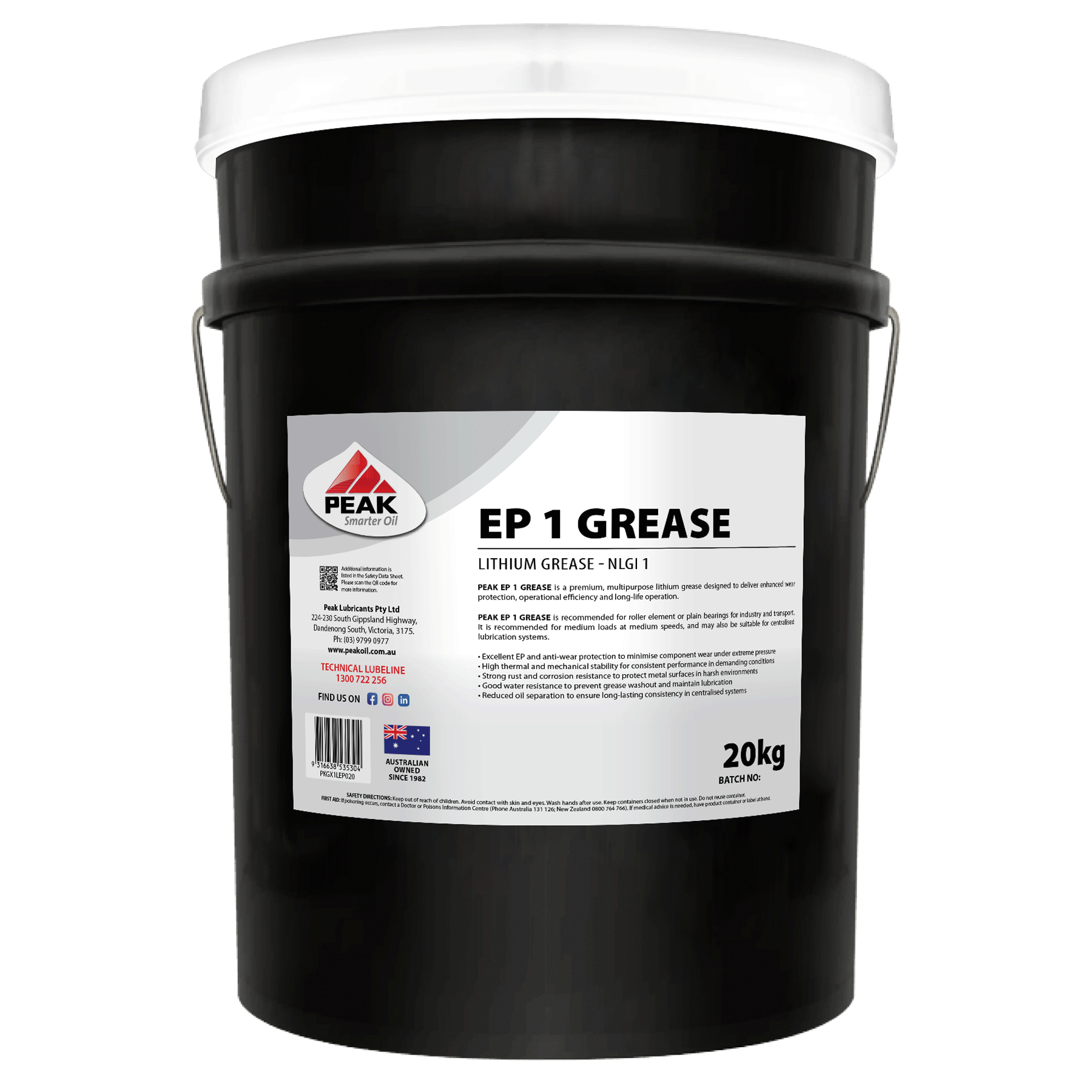 PEAK EP 1 GREASE is recommended for roller element or plain bearings for industry and transport. It is recommended for medium loads at medium speeds, and may also be suitable for centralised lubrication systems.