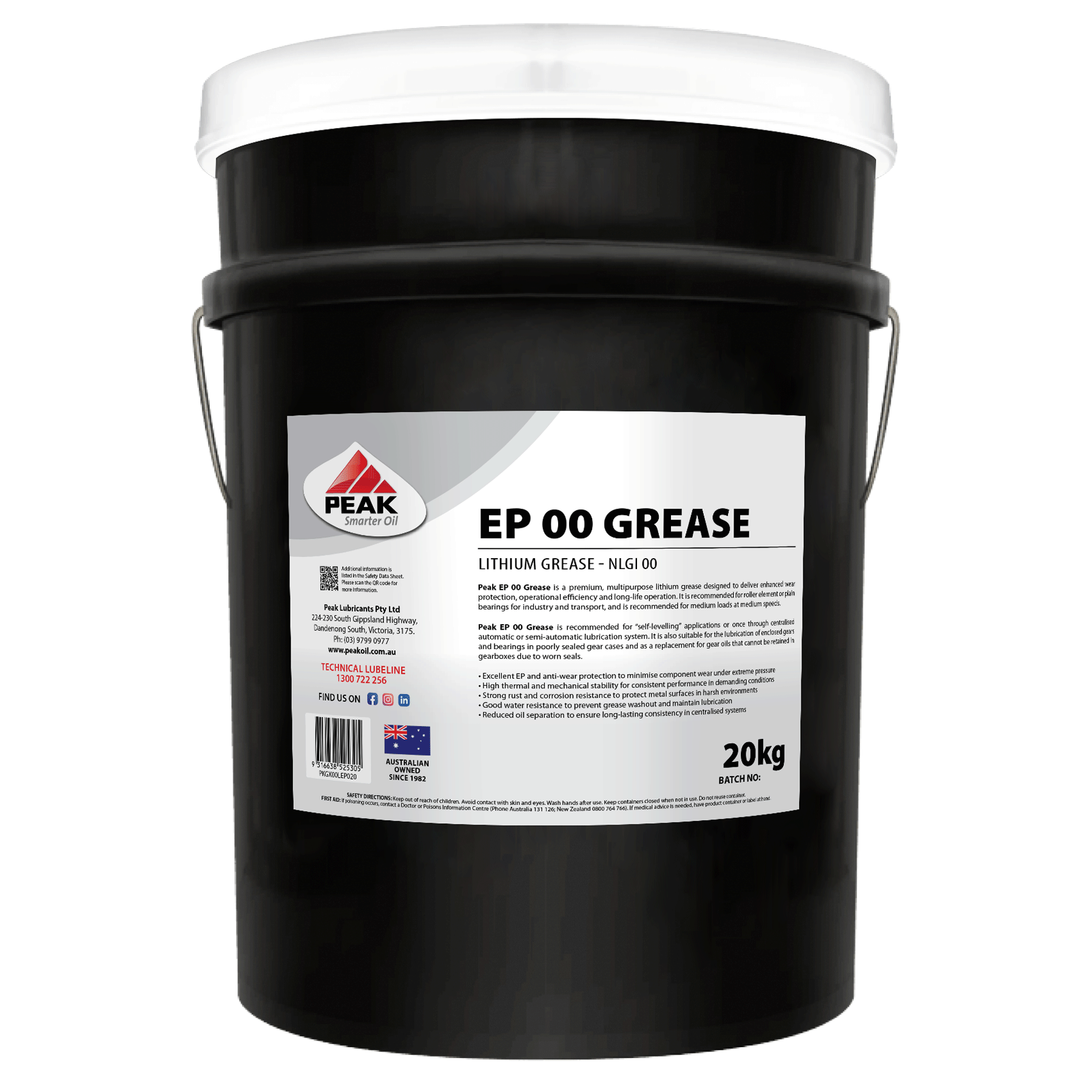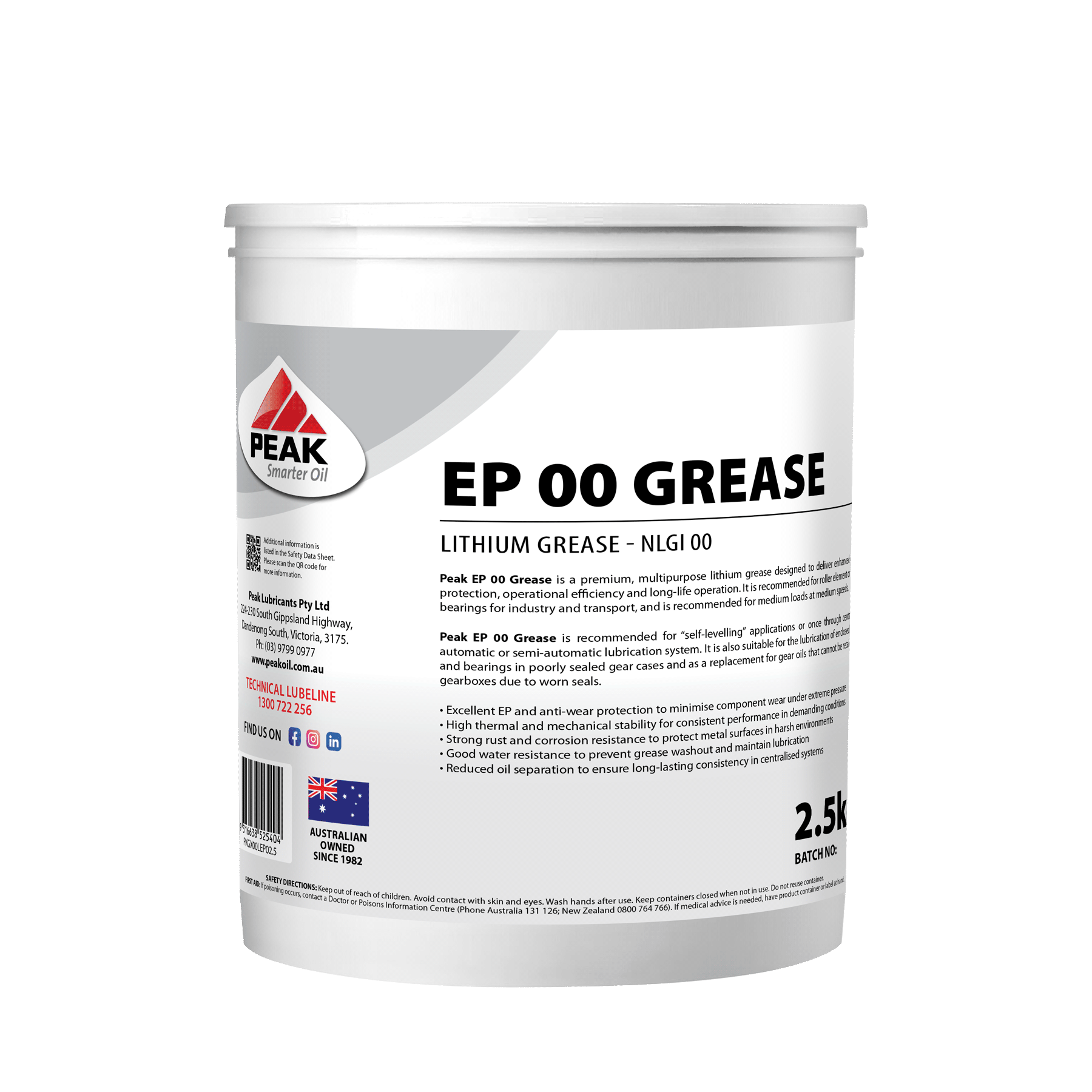 PEAK EP 00 GREASE is a premium, multipurpose lithium grease designed to deliver enhanced wear protection, operational efficiency and long-life operation. It is recommended for roller element or plain bearings for industry and transport, and is recommended for medium loads at medium speeds.