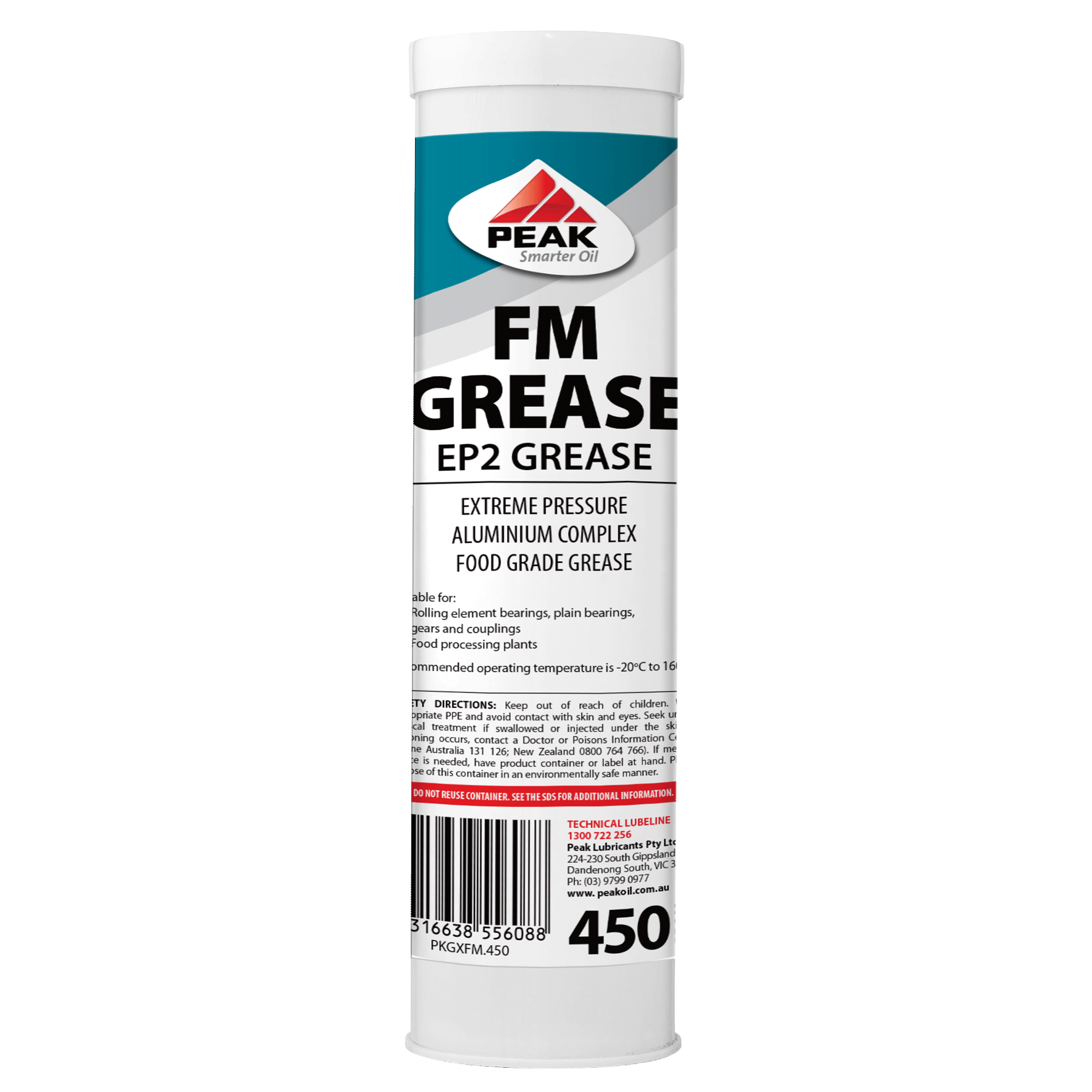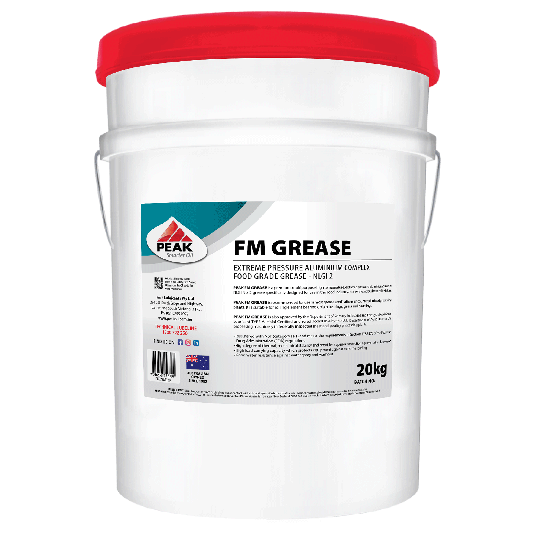 PEAK FM GREASE is also approved by the Department of Primary Industries and Energy as Food Grade Lubricant TYPE A, Halal Certified and ruled acceptable by the U.S. Department of Agriculture for the processing machinery in federally inspected meat and poultry processing plants.