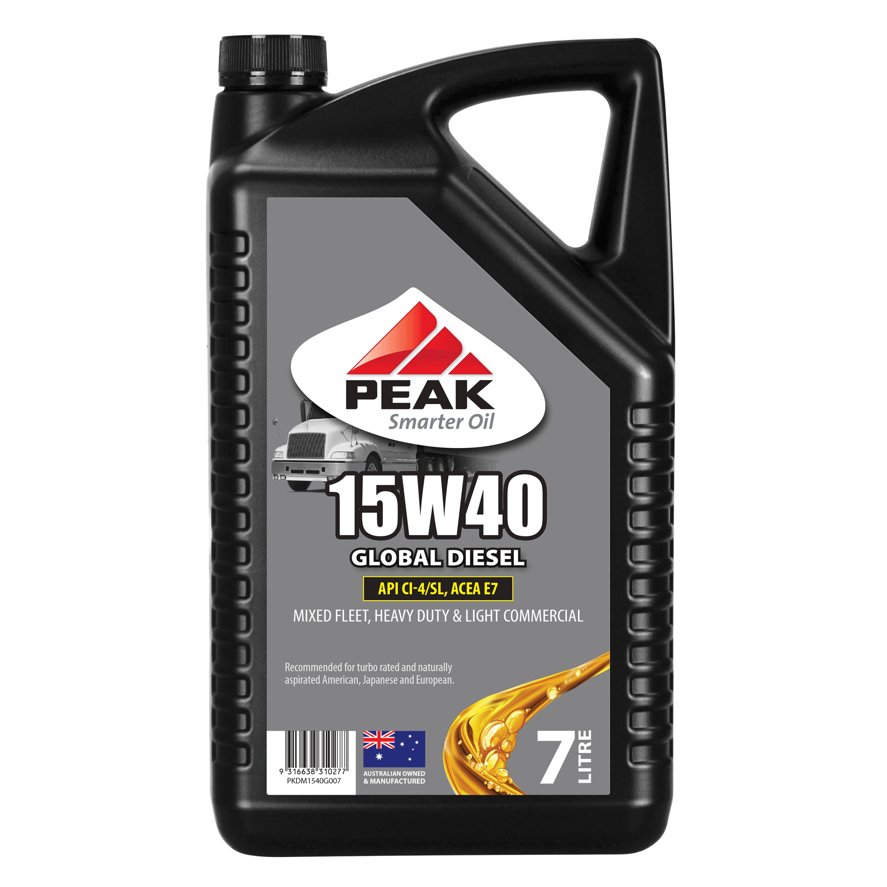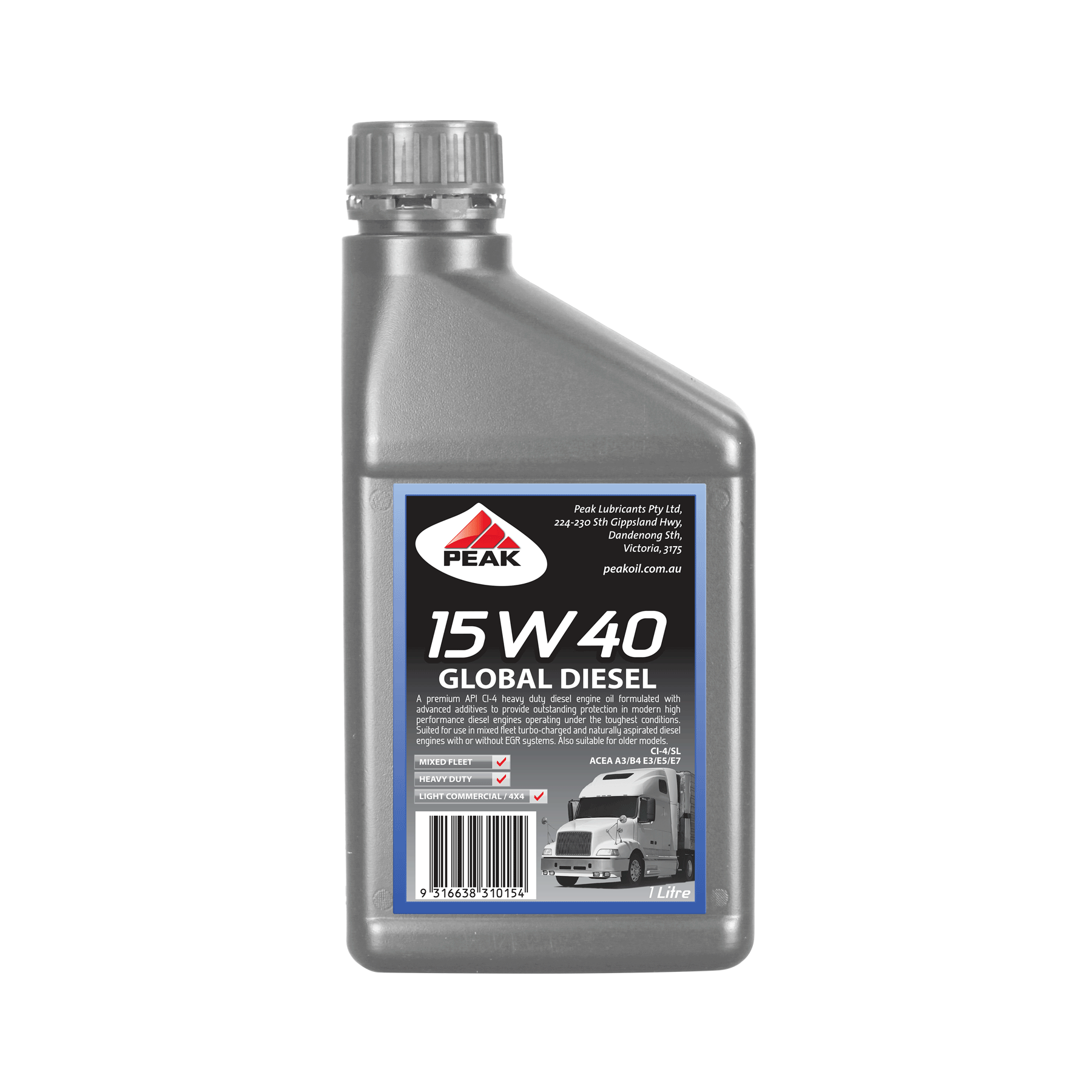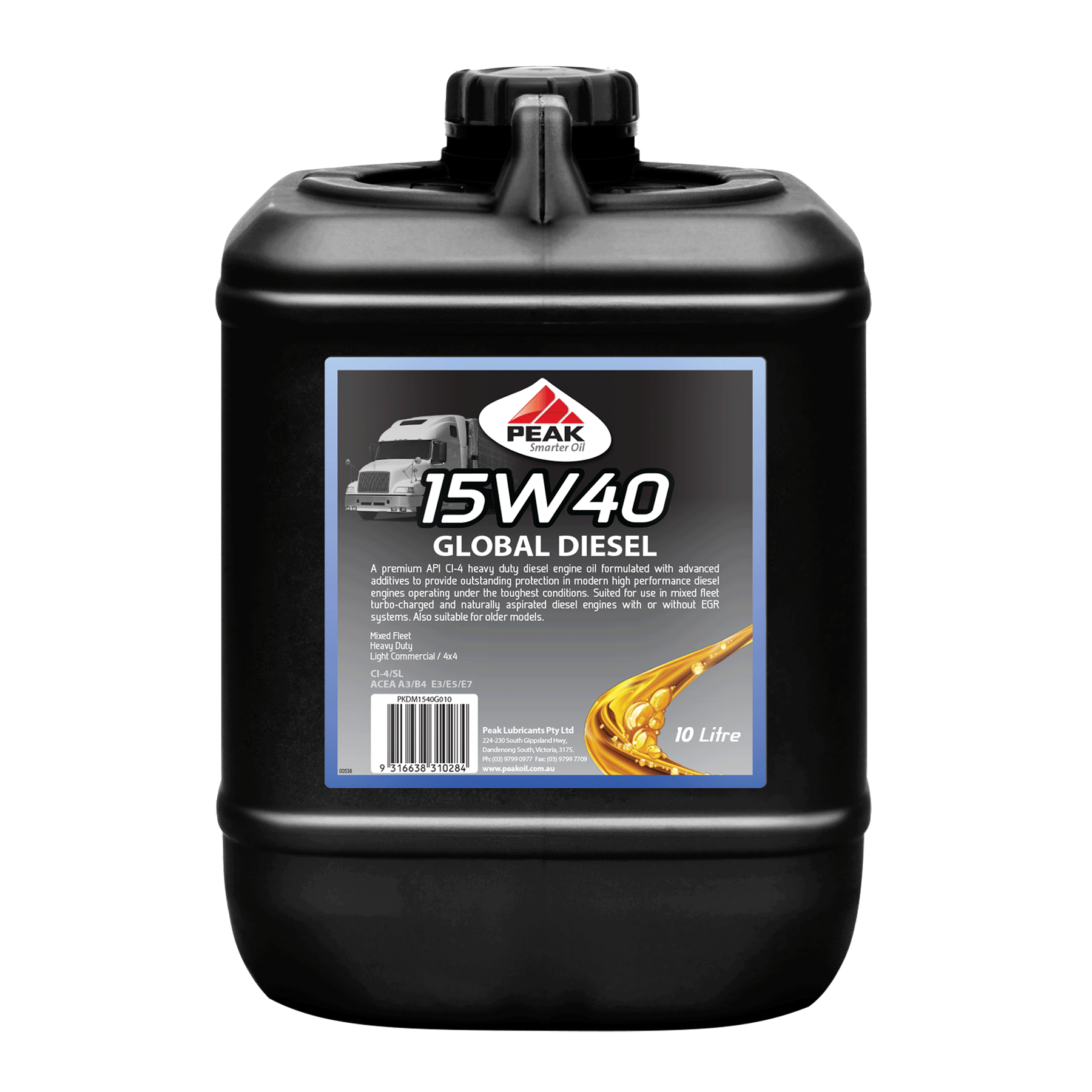 PEAK GLOBAL DIESEL 15W40 is a multi-grade diesel engine oil formulated to provide outstanding protection for diesel engines used in the toughest on and off-road applications.