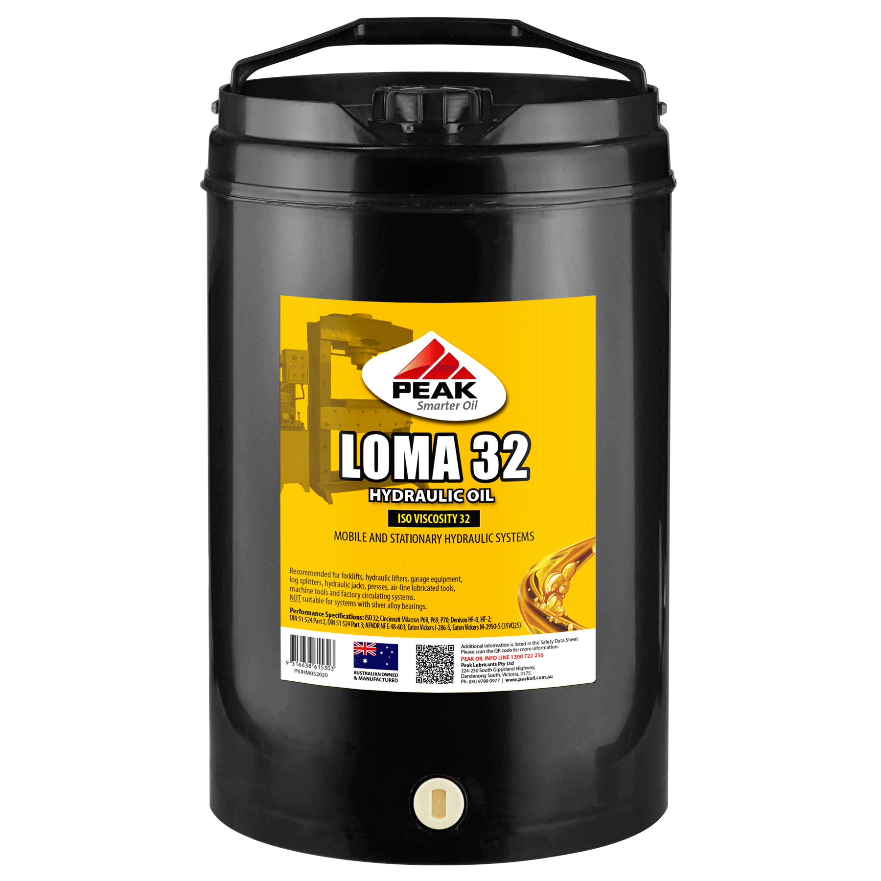 PEAK LOMA 32 is a high-performance, anti-wear hydraulic oil formulated using highly refined base oils with anti-wear, oxidation and corrosion inhibitors and anti-foam additives, resulting in a thermally stable fluid capable of handling high loads and temperatures. It is compatible with most pumps, valves and seal materials used in hydraulic systems.