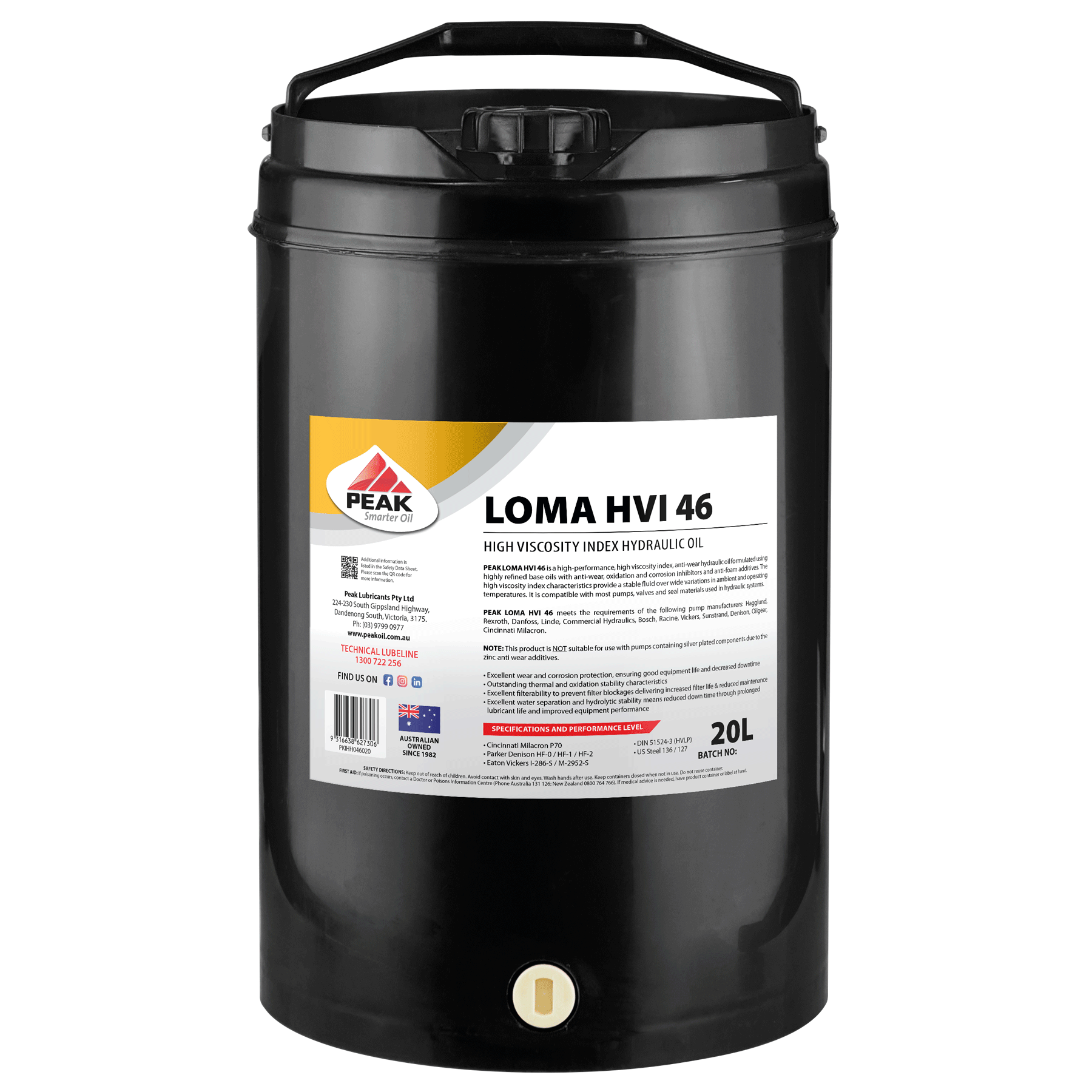 PEAK LOMA HVI 46 is a high-performance, high viscosity index, anti-wear hydraulic oil formulated using highly refined base oils with anti-wear, oxidation and corrosion inhibitors and anti-foam additives.