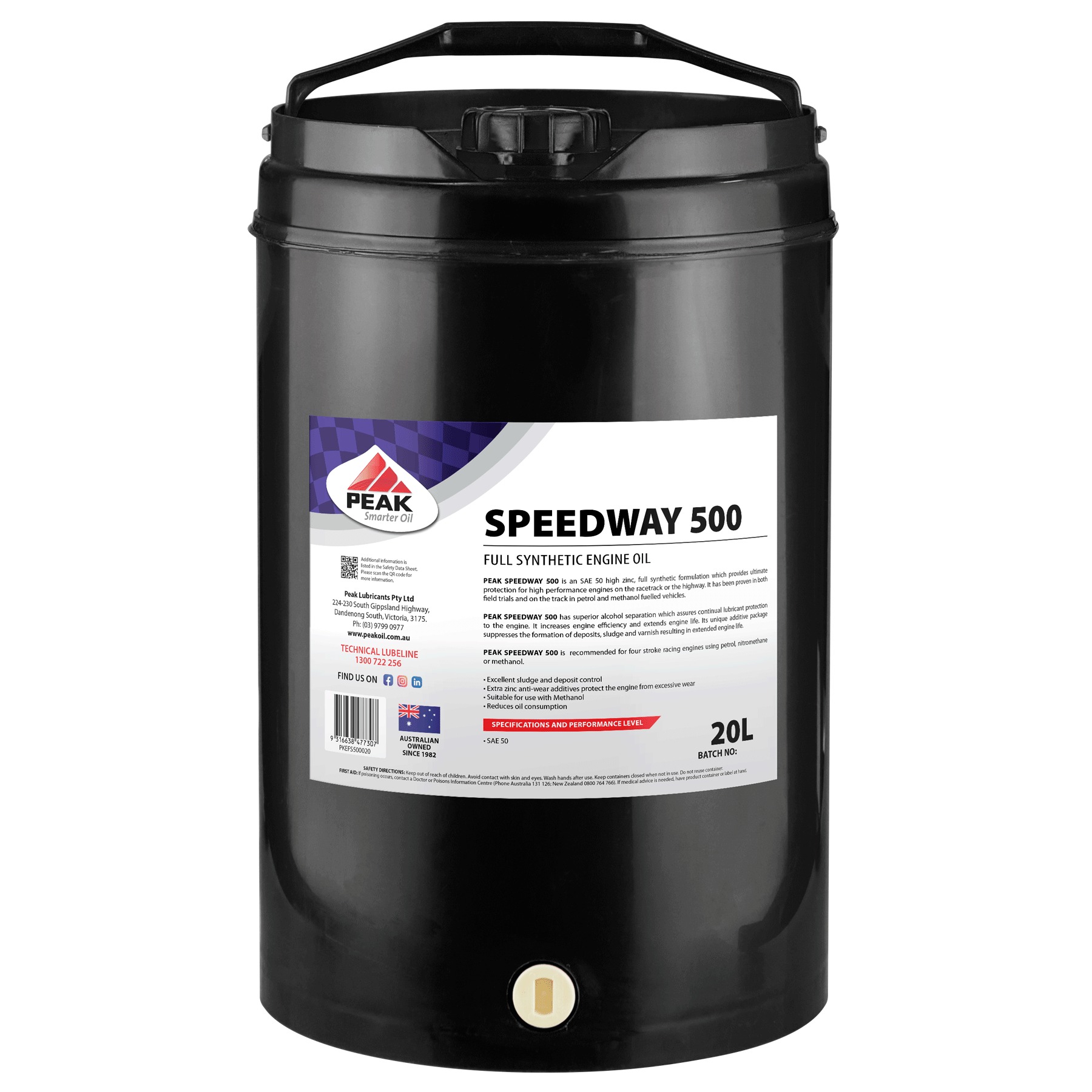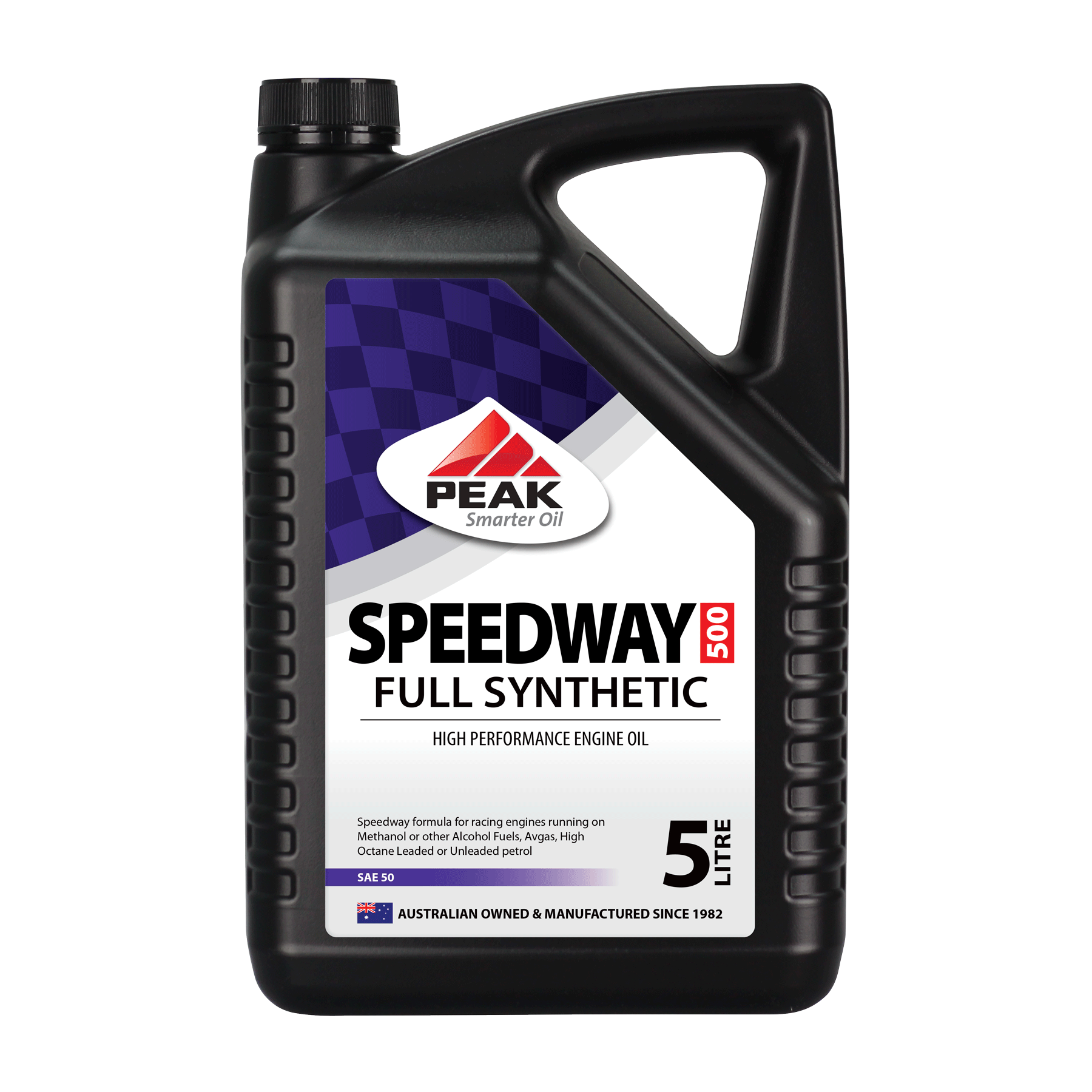 PEAK SPEEDWAY 500 is an SAE 50 high zinc, full synthetic formulation which provides ultimate protection for high performance engines on the racetrack or the highway. It’s been proven in both field trials and on the track in petrol, methanol and nitromethane fuelled vehicles.