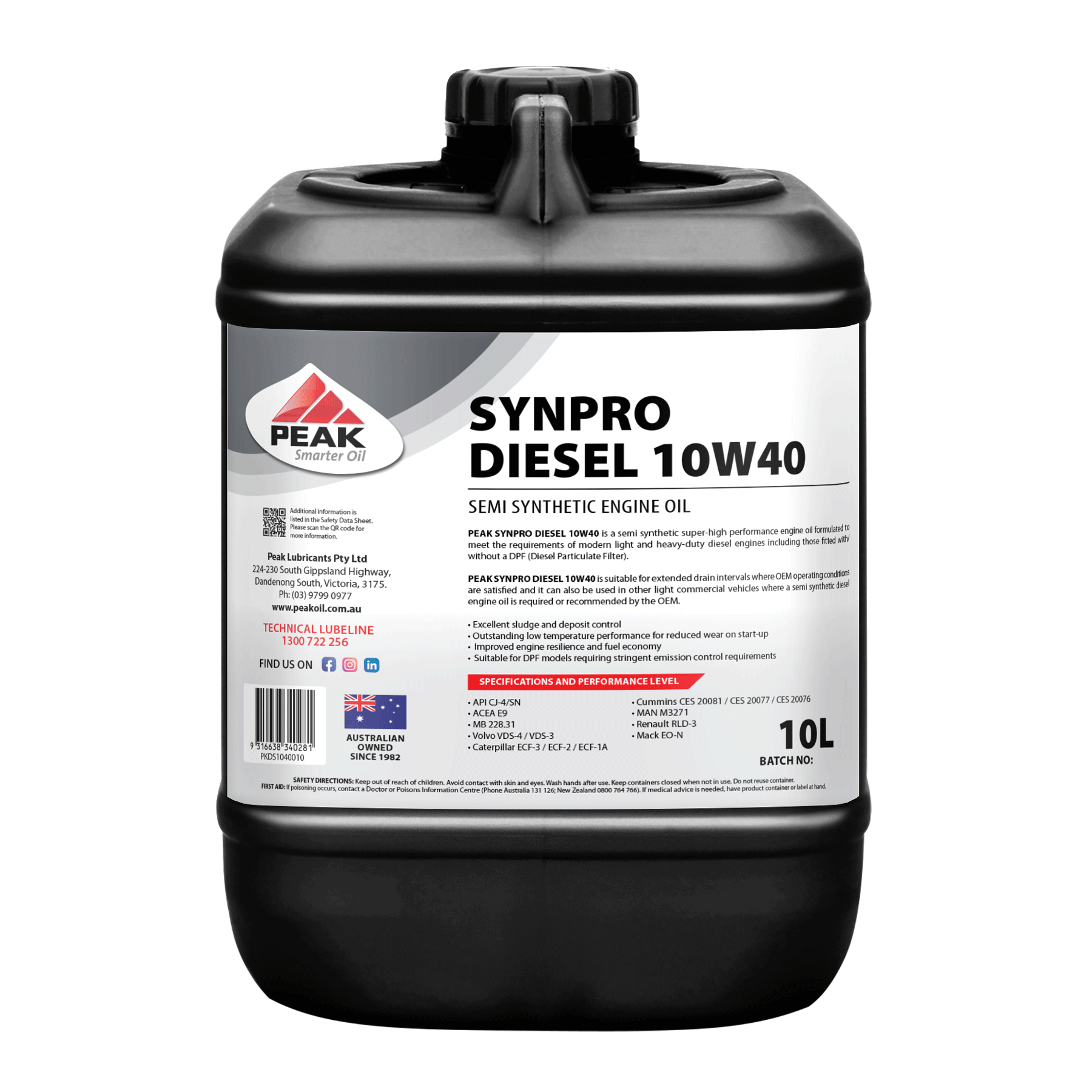 PEAK SYNPRO DIESEL 10W40 is a semi synthetic super-high performance engine oil formulated to meet the requirements of modern light and heavy-duty diesel engines including those fitted with/without a DPF (Diesel Particulate Filter).