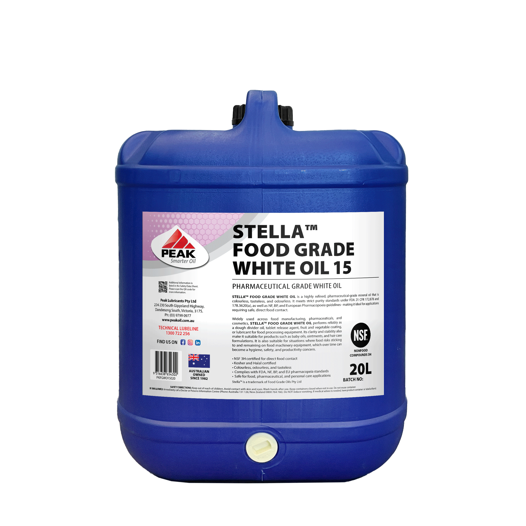 STELLA™ FOOD GRADE WHITE OIL is a highly refined, pharmaceutical-grade mineral oil that is colourless, tasteless, and odourless. It meets strict purity standards under FDA 21 CFR 172.878 and 178.3620(a), as well as NF, BP, and European Pharmacopoeia guidelines - making it ideal for applications requiring safe, direct food contact.
